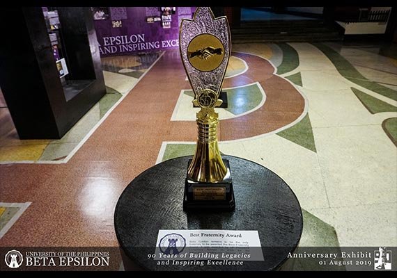 The Beta Epsilon received the Best Fraternity Award on February 22, 2005, given by UP President Ermalinda Roman, for its outstanding service and projects to the UP community throughout its lifespan. The award was received by Prof. Dominador Ilio, in the presence of resident and alumni Betans. To date, the Beta Epsilon is the only recipient of the Best Fraternity Award.