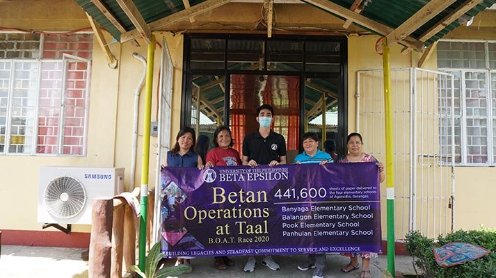 Last September 8 and 9, 2020, the UP Beta Epsilon Fraternity provided a total of 441,600 sheets (920 reams) of paper to four elementary schools in Agoncillo, Batangas. Through the leadership of Brother Alex Ibasco BE’78 and volunteerism of resident Brother Andrei Esteban BE’19, the papers were distributed to Banyaga Elementary School, Balangon Elementary School, Panhulan Elementary School, Panhulan Elementary School, and Pook Elementary School. These materials were mainly used in printing supplementary modules that were used by the students during their remote learning.